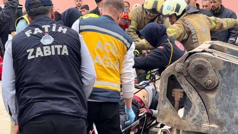 Fatih'te iş makinesinin çarptığı işçi 10 metrelik kuyuya düştü