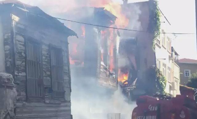 Fatih'te tarihi ahşap binada yangın çıktı. Alevler söndürüldükten sonra çökme tehlikesi olan bina kontrollü şekilde yıkıldı