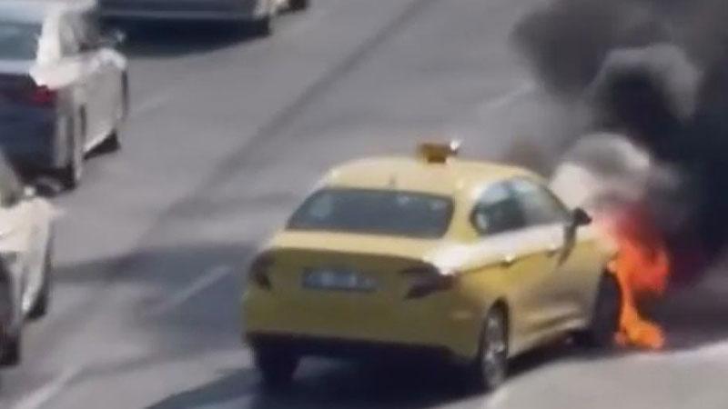 Olay bugün Kennedy Caddesi üzerinde meydana geldi. Cadde üzerinde seyreden 34 TFV 87 plakalı taksinin motor kısmında henüz bilinmeyen bir sebeple yangın çıktı. Taksinin içindekiler araçtan inerken, aracın yolun orta şeridinde yanması sebebiyle caddede trafik yoğunluğu oluştu. Yangın, çevredekilerin ihbarı üzerine olay yerine gelen itfaiye ekipleri tarafından söndürüldü. Olayla ilgili soruşturma başlatıldı. Taksinin yandığı anlar, caddeden geçen başka araçlardaki kişiler tarafından cep telefonu ile kaydedildi.