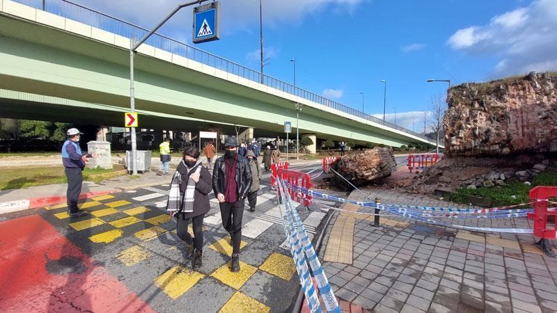 İstanbul'da gece etkili olan yağışın ardından Fatih'teki tarihi surun bir parçası yola devrildi. Zabıta ekipleri, yolun bir şeridini trafiğe kapatarak çevrede güvenlik önlemi aldı.