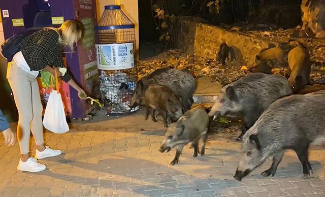 Muğla'nın Fethiye ilçesinde tatilini geçiren yerli ve yabancı turistler ile bölge halkı, kent merkezine inen yaban domuzlarını besliyor. Turistlerin, bir metreden daha az mesafede domuzlar ile iç içe olması dikkat çekti.