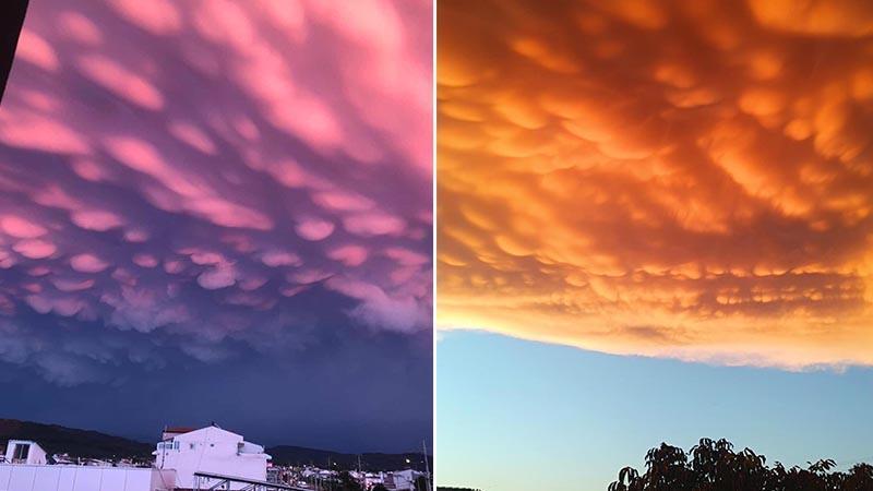 Kesecik benzeri desenler oluşturan ve gökyüzünü kaplayan Mammatus bulutlarını görenler, o anları cep telefonlarıyla kaydetti. Meteoroloji uzmanları, nemli havanın alçalarak kuru hava tabakasıyla karışması sonucu bu tür bulutların ortaya çıktığını belirtti.