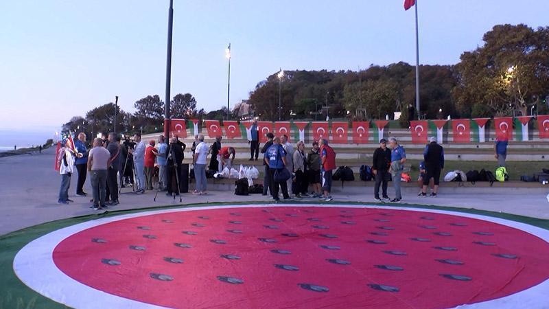 Zeytinburnu Yüzme Kulübü Açık Su yüzücüleri sabah saat 07.00'de Sarayburnu’nda biraraya geldi. 15 kişi Filistin’de yaşanan olayları protesto etmek için ve Küresel Sumud Filosuna destek vermek için yaklaşık 20 kilometre boyunca yüzdü. Sarayburnu'nda denize atlayan yüzücüler, Gazze'deki insani drama karşı Demokrasi ve Özgürlükler Adası'na kadar yaklaşık 4 saat süren mesafeyi yüzerek geçti.