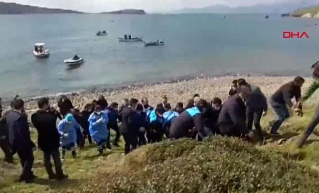 Bir diğer amatör olta balıkçısı Faruk Hız (üstte solda) da "İki eğitim uçağının sürekli üzerimizde uçtuğunu gördük. Onları seyrettik. Fakat saat 11.00 gibi uçak sesleri duyulmadı. Denize odaklandığımız için o anlarda pek çevreye bakmıyorduk. Sonra başımızı kaldırdığımızda kırmız beyaz koca uçak üzerimize geliyordu. O anda uçaktan paraşütleri fırlatması nedeniyle patlama sesi geldiğini duydum. İki paraşütün yukarı çıktığını gördük. Uçak alçak irtifada, sessizdi, çalışmıyordu. Motoru stop etmişti. Uçağın daha sonra arka tarafımızdaki bizim göremeyeceğimiz bölgede denize gömüldüğünü duyduk. Çok geçmeden yetkililer geldi. Pilotların durumu iyiymiş, hastaneye kaldırılmış. Sahil Güvenlik botları ve bir asker kurtarma gemisi geldi" dedi. Seyfi GÜL / FOÇA (İzmir), (DHA)