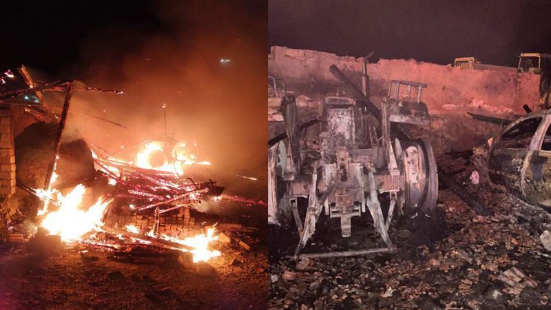 Garajda çıkan yangında otomobil ve traktör kullanılamaz hale geldi