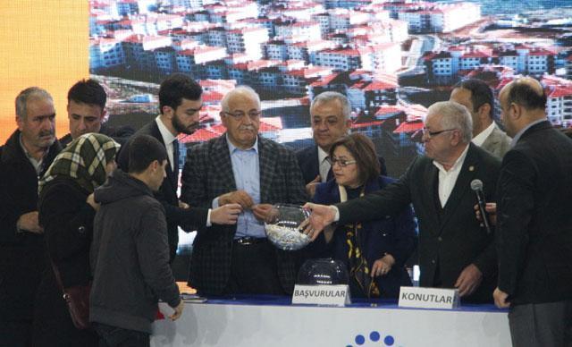 Konuşmaların ardından 916 adet konut için kura çekilişi yapılarak başvuran vatandaşlara evlere teslim edildi.