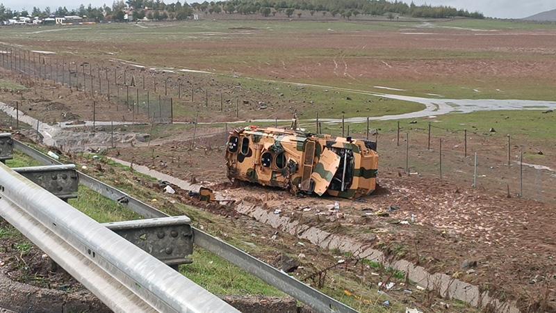 Gaziantep'te askeri aracın şarampole devrildiği kazada 10 asker yaralandı.