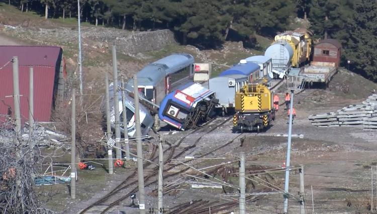 Ölen ya da yaralanan olmazken, ekiplerin raylardaki kaldırma çalışması devam ediyor.