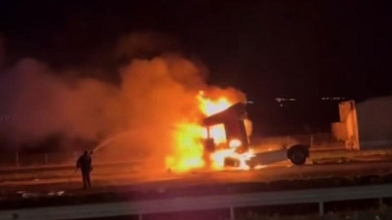 Gaziantep’in Nurdağı ilçesinde, seyir halindeyken alev alan TIR, kullanılamaz hale geldi.