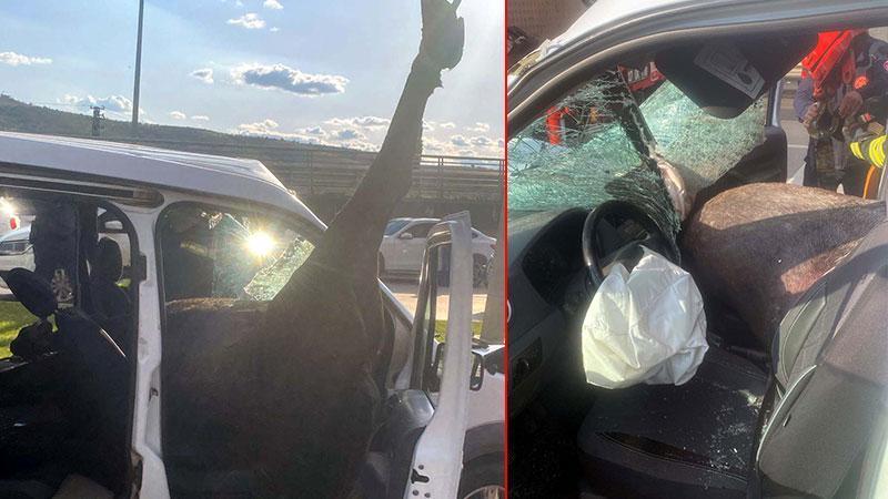 Gaziantep’te, hareket halindeki sivil polis aracına, yola fırlayan başıboş ata çarptı. Ön camdan içeri giren atın öldüğü kazada 2 polis de yaralandı.