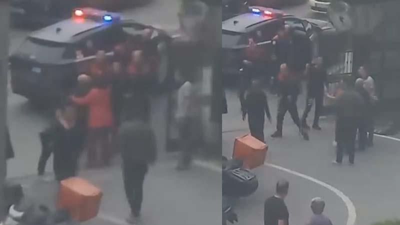 Olay, dün akşam saatlerinde Sarıgöl Mahallesi'nde meydana geldi. İddiaya göre; sitenin girişine gelen bir kişi, içerideki kişilerle alacak verecek nedeniyle tartışmaya başladı. Taraflar arasında çıkan tartışma kısa sürede büyüdü. Çevredekilerin ihbarı üzerine olay yerine polis ekipleri sevk edildi. Polisin tarafları ayırdığı sırada site içerisine giren bir kadın, bıçak alarak karşı tarafa saldırdı. Tartıştığı kişiye bıçakla saldırmaya çalışan kadına polis müdahale ederken o anlar çevredekilerin cep telefonu kamerasıyla kaydedildi.