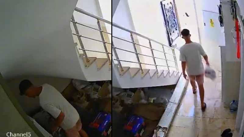 Şüpheli önce bina içerisinde bir süre dolaştıktan sonra dışarı çıkarak bu sefer poşetle tekrar binaya girdi. Şüpheli gözüne kestirdiği ayakkabıları poşet içine koyduktan sonra binadan çıkıp gitti. O anlar bina içinde bulunan güvenlik kamerasına yansıdı.