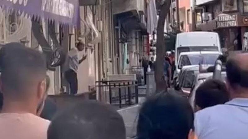 Polis ekiplerinin müdahalesi ile elindeki bıçağı düşüren H.Ç. gözaltına alındı. Yaşananlar çevredekiler tarafından cep telefonu kamerasıyla kaydedildi.