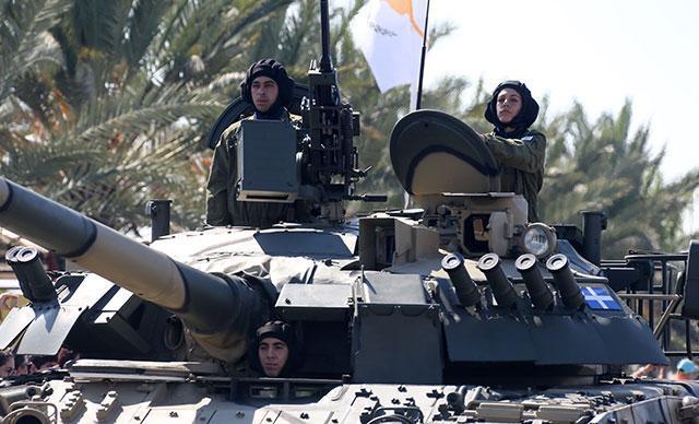 Kıbrıs Rumların düzenlediği 1 Ekim Bağımsızlık Günü askeri geçit törenine kadın tankçılar damga vurdu.