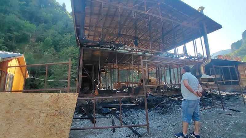Giresun'un Dereli ilçesindeki Kuzalan Tabiat Parkı'nda bulunan sosyal tesislerde çıkan yangında, restoran ve kafe kullanılmaz hale geldi.