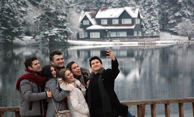 Gölcük Tabiat Parkı, Bolu'da günlerdir etkili olan kar yağışı sonrası beyaz örtüyle kaplandı. Parka gelen ziyaretçiler, beyaza bürünen göl çevresinde yürüyüp, doğa ile iç içe gün geçirdi. Tabiat parkındaki gölün bir kısmının da buz tuttuğu görüldü. Gölcük evi ve ağaçların göle yansıması da güzel görüntüler oluşturdu. Gölcük Tabiat Parkı'ndaki kar manzarası, drone ile havadan görüntülendi.