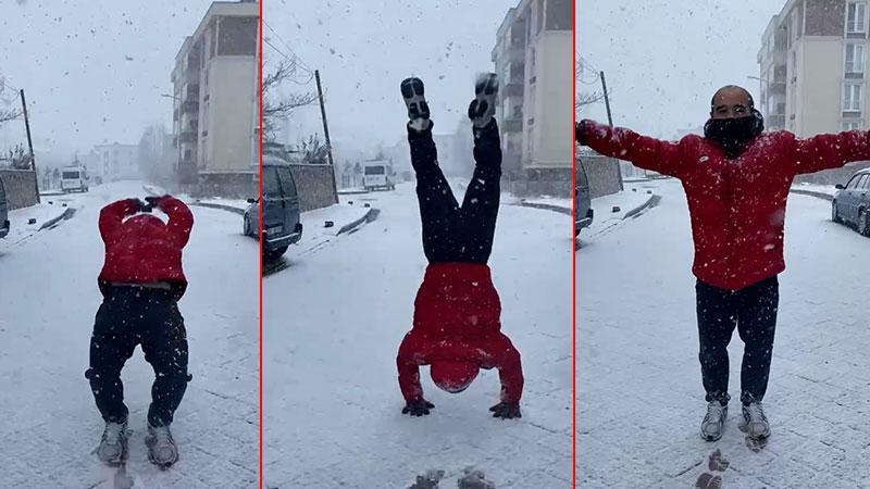 Samsun’un Terme ilçesinde etkili olan kar yağışı, renkli görüntülere sahne oldu. Guinness Rekorlar Kitabı’na geri takla rekoruyla giren judocu Osman Ismak (35), karın keyfini geriye doğru 20 takla atarak kutladı.