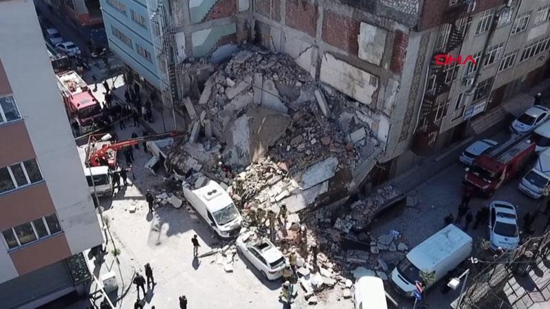 Olay, saat 13.45 sıralarında Malazgirt Caddesi'nde meydana geldi. Kentsel dönüşüm kapsamında yıkım kararı verilen ve boşaltılan 5 katlı bina çöktü. Binanın etrafında park halinde olan 5 araç da enkaz altında kaldı. İhbar üzerine olay yerine çok sayıda polis, sağlık ve itfaiye ekipleri sevk edildi. Polis ekipleri çevrede güvenlik önlemi alırken, itfaiye ekipleri araçlarda inceleme yaptı. Enkaz altında kalan hafif ticari aracın içinde sıkışan Emre Öztürk itfaiye ekiplerinin çalışması sonucu kurtarıldı. Sağlık ekipleri tarafından ilk müdahalesi olay yerinde yapılan Öztürk hastaneye kaldırıldı. Enkaz altına canlı olup olmadığının belirlenmesi için hassas burunlu köpekler ile arama yapıldı.