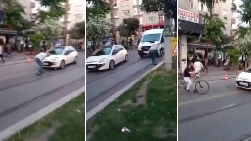 Güngören'de yola döşen yavru bir kargayı kurtarmaya çalışan esnafa diğer kargalar saldırdı.