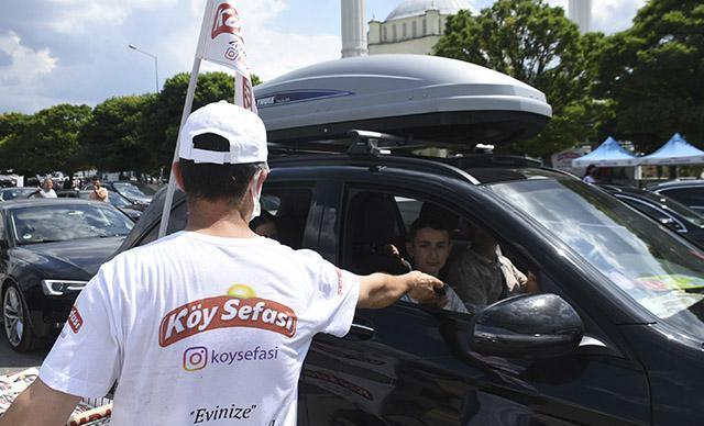 İkram Zeytinleri Köy Sefası Genel Koordinatörü Ali Harun Meldan, "Kültürümüzde güzel bir adet vardır, yola çıkanlara yanlarında giderken yolluk verilir. Kapıkule'den çıkıp en az 15-20 saat binlerce kilometre yollarda gidecek olan hemşehrilerimize, dostlarımıza giderken ürünlerimizden bir yolluk olarak vermek istedik" dedi.