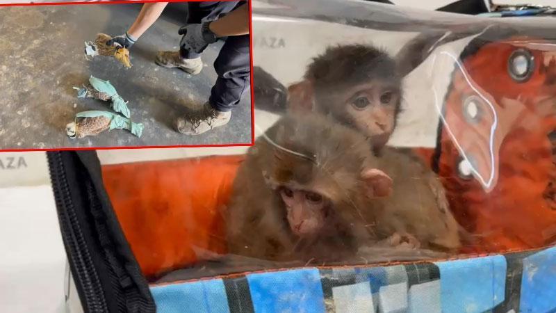 Habur Gümrük Kapısı'nda 3 şahin ve 2 makak maymunu ele geçirildi