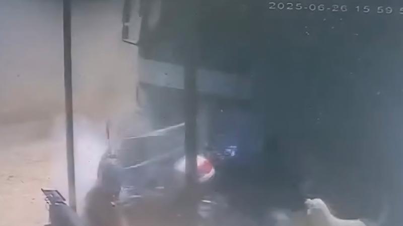 Hatay'da prefabrik iş yerlerine çarpan hafriyat kamyonunun ehliyetsiz sürücüsü M.S.A. (16) ile araç sahibine toplam 98 bin 703 TL para cezası uygulandı. Kaza, güvenlik kamerasına yansıdı.