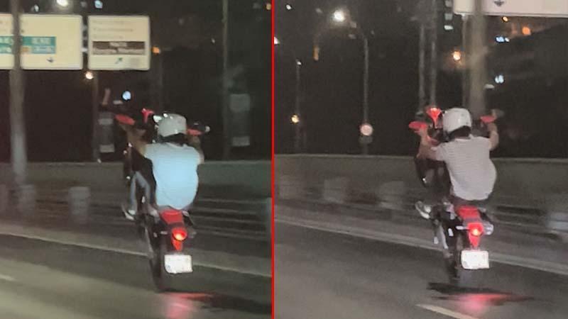 Görüntülerde motosiklet sürücüsünün seyir halindeyken motosikletin önünü havaya kaldırdığı ve dakikalarca tek teker üzerinde gittiği anlar görülüyor. Görüntülerde ayrıca, motosiklet sürücüsünün kontrolsüz şekilde ilerlediği hem kendi hem de trafikteki diğer sürücülerin hayatını tehlikeye attığı anlar da yer alıyor. Uzun süre emniyet şeridinde ilerleyen sürücü bir süre sonra gözden kayboluyor.
