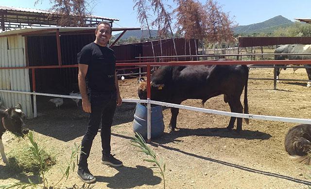 İzmir’in Kemalpaşa ilçesindeki Çiftlik Hayvanları Barınağı’nı ziyaret eden Haluk Levent, 2 ay önce doğan ve Ferdi ismini koyduğu boğa Ferdinand’ın yavrusuna "Deden geldi" dedi.