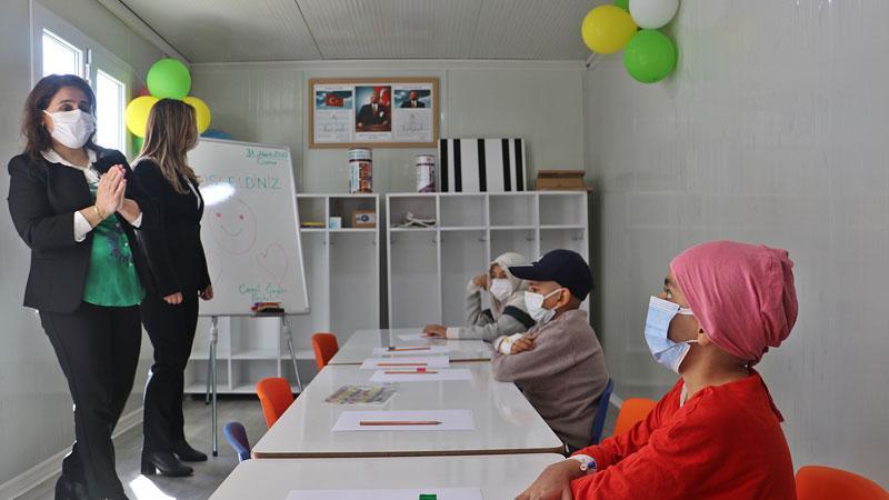Hastane bahçesinde depremzede ve hasta çocuklar için konteyner sınıf oluşturuldu