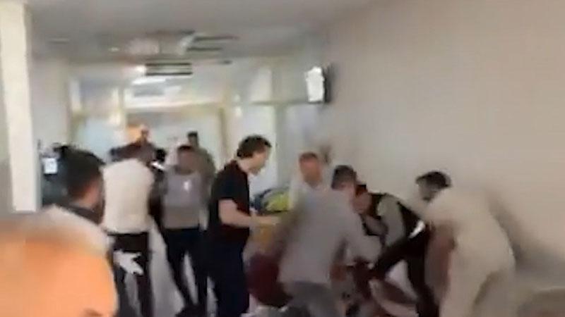 Hastane koridorunda tekme ve yumruklarla birbirine saldıran tarafları araya giren sağlık çalışanları ve güvenlik görevlileri ayırdı.