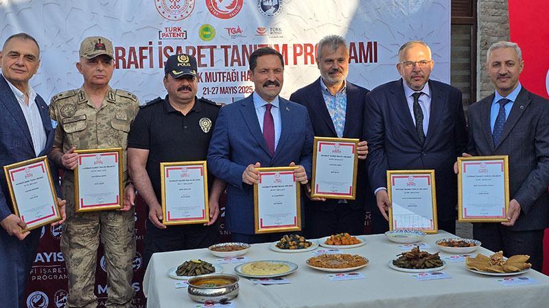 Kentte coğrafi işaretli tescilli ürün sayısı Hatay Valiliği’nin yaptığı çalışmalarla 10 yeni ürünün daha eklenmesi ile 50’ye yükseldi. Hatay’ın yöresel lezzetleri aşur yemeği, bakla ezmesi, peynirli irmik helvası, taş kadayıf, tuzlu yoğurt çorbası, yaprak sarması, ekşi aşı, bahtenis dolması, fellah köftesi ve pirzolalı yaprak sarma coğrafi işaret tescil belgesi aldı. Antakya Gastronomi Çarşısı’nda düzenlenen tanıtım etkinliğine Vali Mustafa Masatlı, Büyükşehir Belediye Başkanı Mehmet Öntürk ve protokol üyeleri katıldı.