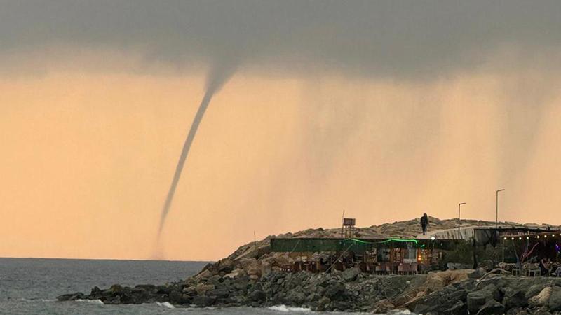 Hatay'ın Samandağ ilçesinde denizde hortum oluştu.