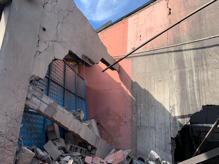 Patlama nedeniyle fabrikanın duvarının bir bölümü de yıkıldı.