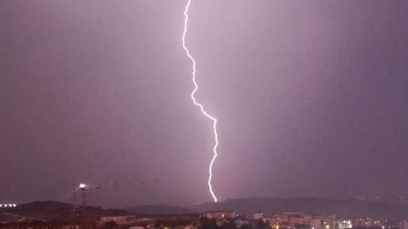 İl genelinde etkili olan sağanakla birlikte akşam saatlerinde şimşek ve yıldırımlar gökyüzünü aydınlattı.