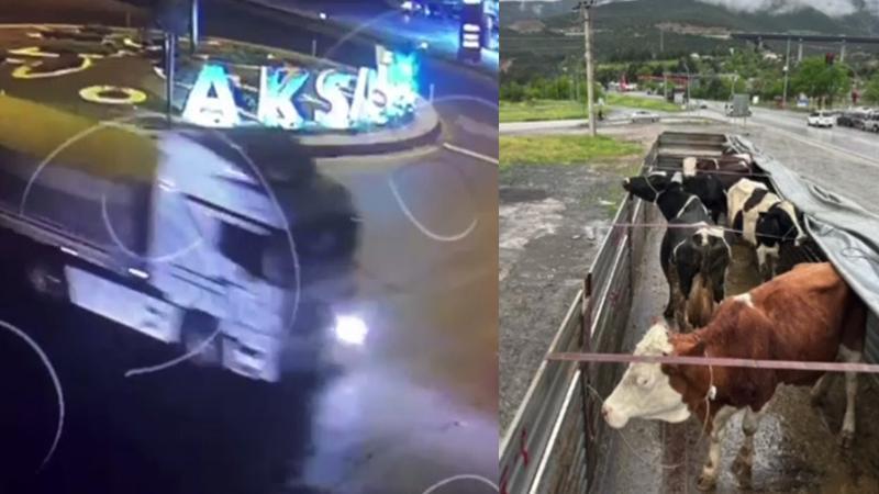 Aksaray'da bir ahırdan 6 büyükbaş çalan 2 şüpheli, hayvanları taşıdıkları TIR'ın yanmayan farı sayesinde fark edilip, Gaziantep'te yakalandı.