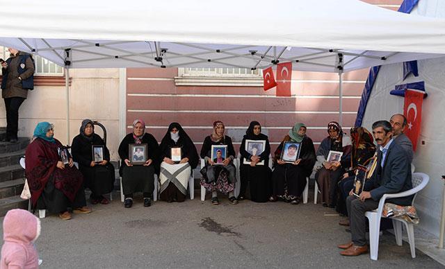 6- Mersin'in Anamur ilçesinde yaşayan Rahime Uymaz, Diyarbakır'ın Lice ilçesinde 28 Temmuz 2015'te eşi ve kızının yanında PKK'lı teröristler tarafından aracından indirilerek, kaçırılan yeğeni polis memuru Sedat Yabalak (34) için oturma eylemine katıldı. Polis Sedat Yabalak'ın hasta annesi Ünzile Yabalak ise 8 Eylül akşamı Diyarbakır'a gelip nöbete başladı. Solunum hastası Ünzile Yabalak'a, PKK'lı teröristler tarafından 23 Eylül 1995'te şehit edilen Astsubay Murat Namdar'ın eşi Yıldız Namdar refakat ediyor.