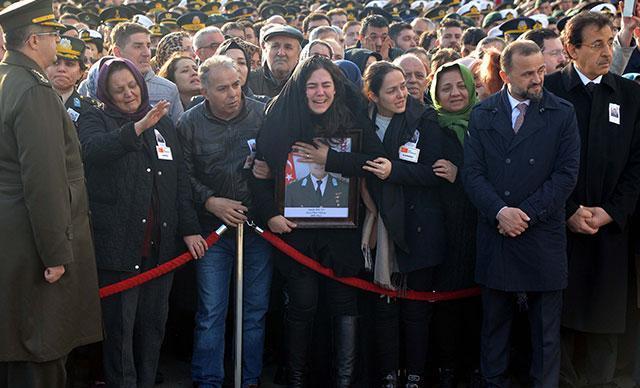 İstanbul Çekmeköy'de meydana gelen helikopter kazasında şehit olan Kara Pilot Yüzbaşı Semih Özcan (33), memleketi Ankara'da düzenlenen törenle son yolculuğa uğurlandı. Cenaze töreninde şehit eşinin fotoğrafını taşıyan Gizem Özcan, "O benim kahramanımdı" diyerek, gözyaşı döktü.