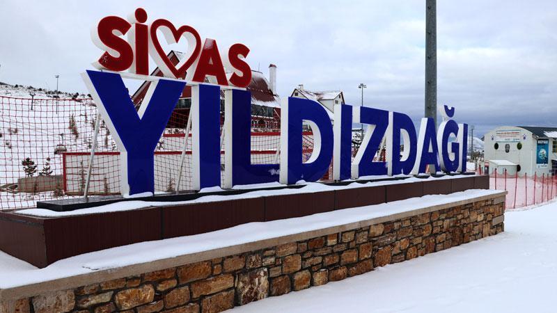 Sivas'ta, henüz sezon açılışı yapılamayan Yıldız Dağı Kış Sporları ve Turizm Merkezi, dün akşam saatlerinde etkili olan kar yağışıyla beyaza büründü.