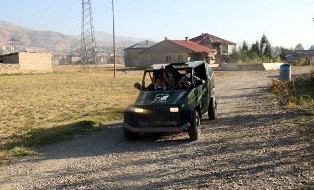 Hakkari'nin Yüksekova ilçesinde, inşaat işçisi Mehmet Şerif Karahan (38), yaklaşık 40 bin lira harcayarak hurda parçalardan araç yaptı. Karahan, 'Hammer'a benzettiği aracıyla 8 yaşındaki kızı Hira'yı yaklaşık 1 kilometre uzaklıktaki okuluna bıraktı.
