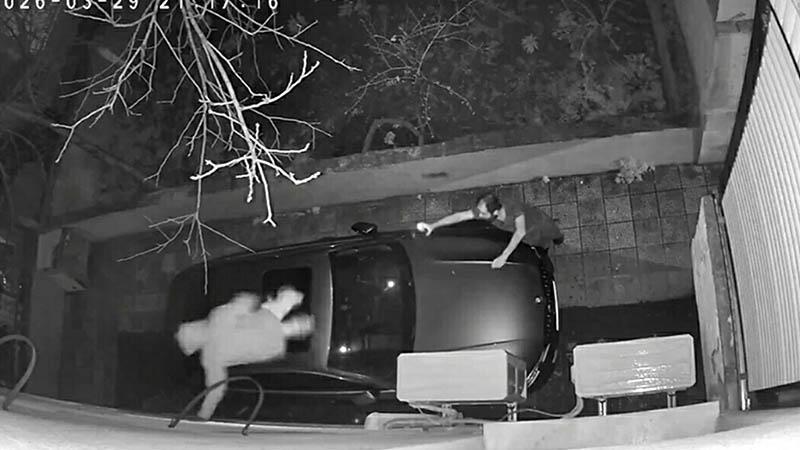 İzmir'in Buca ilçesinde bir kişi, hırsızlık amacıyla tırmandığı klimanın üzerinde bina sakini Onur D. tarafından fark edilince park halindeki aracın üzerine atlayarak kaçtı. O anlar binanın güvenlik kameralarına yansıdı.