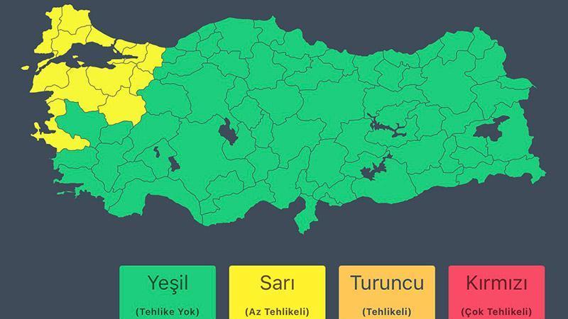 İçişleri Bakanlığı, Marmara, Kuzey Ege kıyıları ile Kütahya ve Eskişehir'in güneybatı kesimlerinde kuvvetli rüzgar ve fırtına, Balıkesir ile Çanakkale çevreleri için de fırtına uyarısında bulundu.