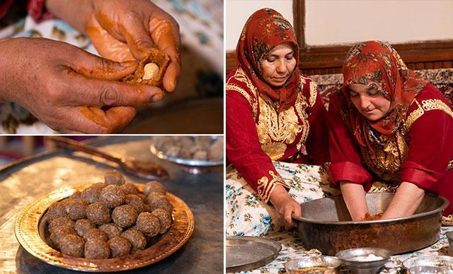 Çok meşhurdur. Düğünlerimizin olmazsa olmaz bir yemeğidir. Küçük küçük toplar halinde köfteleri sıktıktan sonra önceden hazırlanan kuyruk yağı ile doldururuz daha sonra ise onları küçük küçük top haline getiririz.