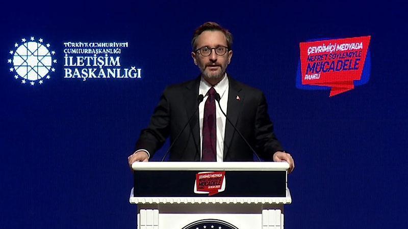 İletişim Başkanı Fahrettin Altun, "Yaptığımız araştırmalarda Türkiye'de özellikle çevrim içi medyada nefret söylemine en fazla maruz kalan grupların yaygın toplumsal gruplar olduğunu görüyoruz. Türkiye'de özellikle dindar toplum kesimlerinin çok yoğun bir şekilde medyada nefret söylemine maruz kaldığını görüyoruz" dedi.