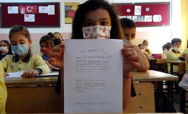 Van’ın Erciş ilçesinde, 4’üncü sınıf öğrencisi Eylül Ecrin Özkul (9), yüz yüze eğitim mutluluğunu Sağlık Bakanı Fahrettin Koca ile paylaştı. Koca’ya mektup yazan Özkul, "Yüz yüze eğitimi başlattığınız için size teşekkür ediyorum" dedi.