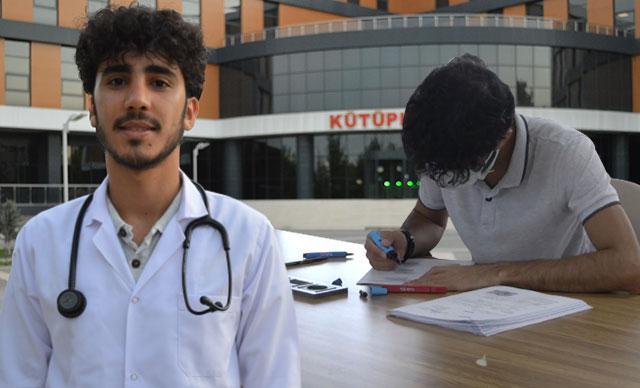 Elazığ'da yaşayan Hasan Coşkun (23), inşaatında çalıştığı kütüphaneye şimdi 'tıp öğrencisi' olarak gelip, ders çalışıyor.