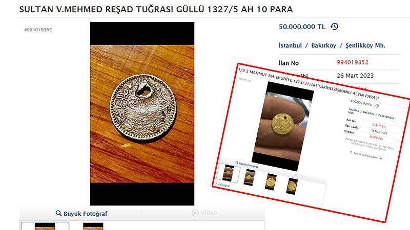 Tarihi eser ya da antika niteliği taşıdığı düşünülen madeni paraların satışı için elektronik ticaret işlemlerinin yapıldığı platformda oluşturulan ilanlarda 'koleksiyonculara yönelik', 'eski para', 'tarihi para' gibi ifadelerin yanı sıra, hangi döneme ait olduğu gibi bilgiler paylaşılıyor. İnternet sitesinde 'para, madalya' başlığı altındaki 27 binden fazla ilan arasında 2'nci Mahmud dönemine ait 1223 tarihli altın para en yüksek fiyattan satışa sunuldu. Osmanlı İmparatorluğu'nun 30'uncu padişahı 2'nci Mahmud dönemine ait altın paranın sahibi ürünü, 500 milyon liradan satışa çıkardı. Osmanlı'nın 35'inci padişahı 5'inci Mehmed adıyla bilinen Sultan Mehmed Reşad dönemine ait 1327 tarihli 10 para ise sahibi tarafından 50 milyon liradan satışa sunuldu. Çoğu Osmanlı'ya ait paraların satıldığı ilanlar arasında farklı dönemlerde kullanılan yabancı paralar da yer alıyor.