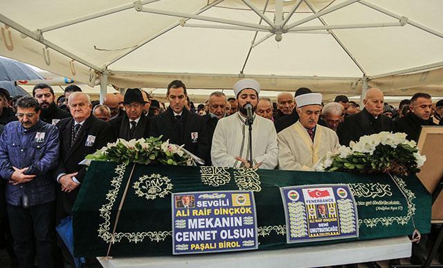 Bir süredir rahatsızlığı sebebiyle tedavi gördüğü hastanede vefat eden Akkök Holding Yönetim Kurulu Başkanı Ali Raif Dinçkök için Marmara Üniversitesi İlahiyat Fakültesi Tatbikat Camii’nde öğle namazını müteakip kılınan cenaze namazı kılındı. Aynı zamanda Fenerbahçe’nin eski yönetim kurulu üyelerinden olan Dinçkök’ün cenazesine Fenerbahçe Başkanı Ali Koç, Fenerbahçe eski Başkanı Aziz Yıldırım, Galatasaray Kulübü eski Başkanı Faruk Süren, Muharrem İnce, Mehmet Ağar, Hüsamettin Özkan, Koç Holding Yönetim Kurulu Başkanı Ömer Koç, futbol yorumcusu Şansal Büyüka başta olmak üzere iş ve spor camiasından çok sayıda kişi katıldı.