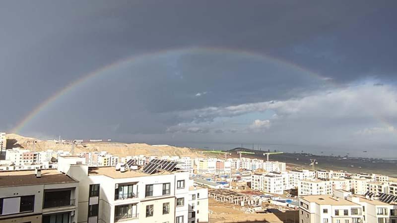 Hatay'da İskenderun Körfezi'nde etkili olan yağmurun ardından gökkuşağı oluştu.