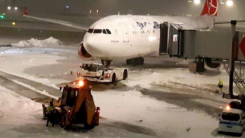 İstanbul'da akşam saatlerinde şiddetini artıran kar yağışı hayatı olumsuz etkilerken, İstanbul Havalimanı'nda planlanan uçuşların yapılması için karla mücadele çalışmaları aralıksız devam ediyor. Sefer sayılarının yüzde 30 azaltıldığı İstanbul Havalimanı'nda bugün için planlanan 591 uçuştan 522'si saat 19.28 itibariyle gerçekleşti.