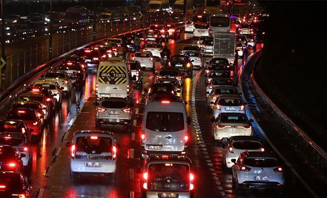 İstanbul trafiğinde cuma ve yağmur yoğunluğu